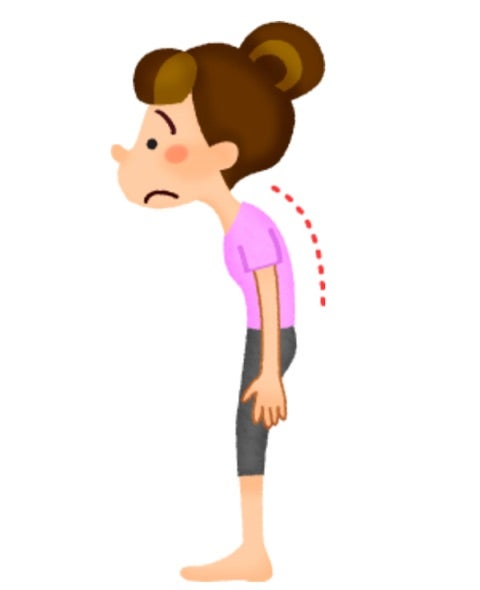 背中が丸まると